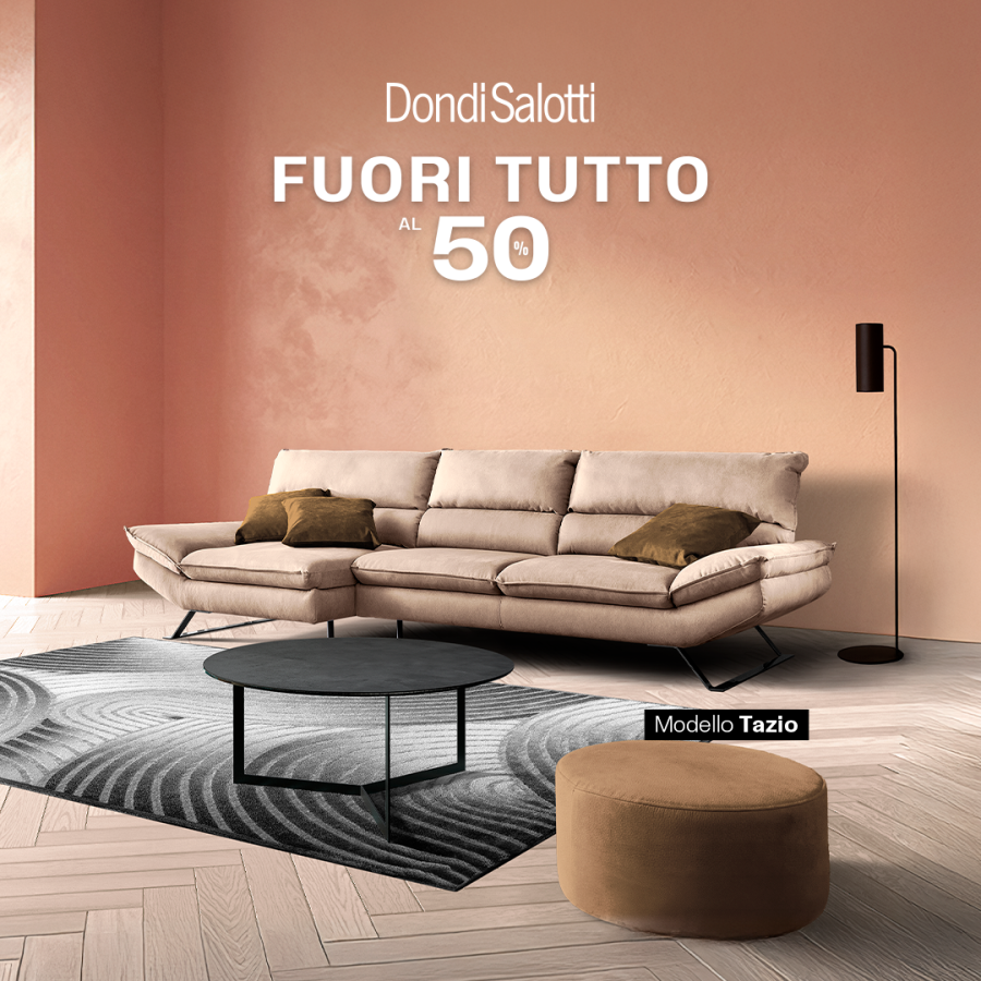 La campagna prevede uno sconto del 50% sul prezzo di listino applicato all’intera collezione di divani, poltrone e pouf, se realizzata in qualsiasi composizione nei rivestimenti denominati «Promo Selection».